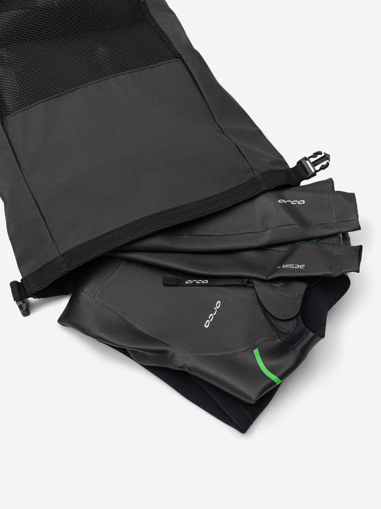 Medföljande Mesh Backpack gör det enkelt att förvara, torka och transportera våtdräkten – praktiskt både före och efter träning eller tävling.